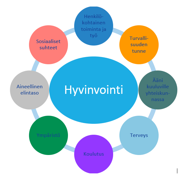 Yksilön hyvinvointi on monisyinen, kokemuksellinen asia, joka vaihtelee ja muuttuu ajassa ja eri elämänvaiheissa. Professori Joseph E. Stiglitz (2009) työryhmineen on määrittänyt hyvinvoinnin rakentumisen kannalta kahdeksan ihmiselämän osa-aluetta.