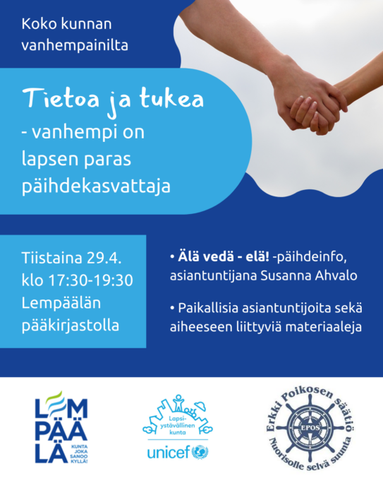 Koko kunnan vanhempainilta tiistaina 29.4. klo 17:30-19:30 Lempäälän pääkirjastolla