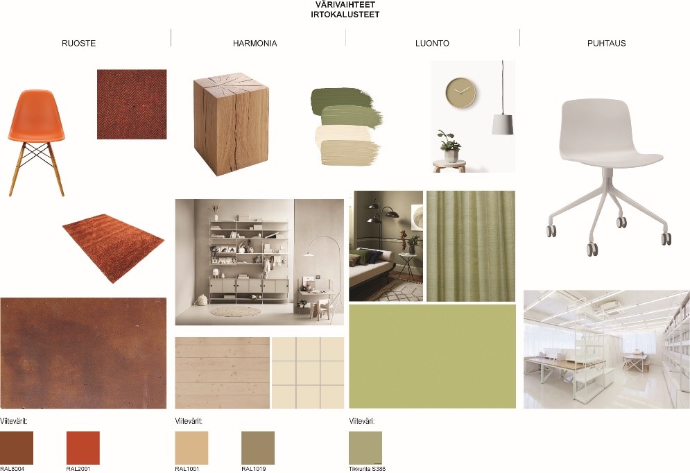 Uuden Kanavan koulun irtokalusteissa vallitsee harmoninen värimaailma