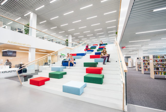 Kirjaston lehtienlukusali Risti-nolla sijaitsee pohjakerroksessa.