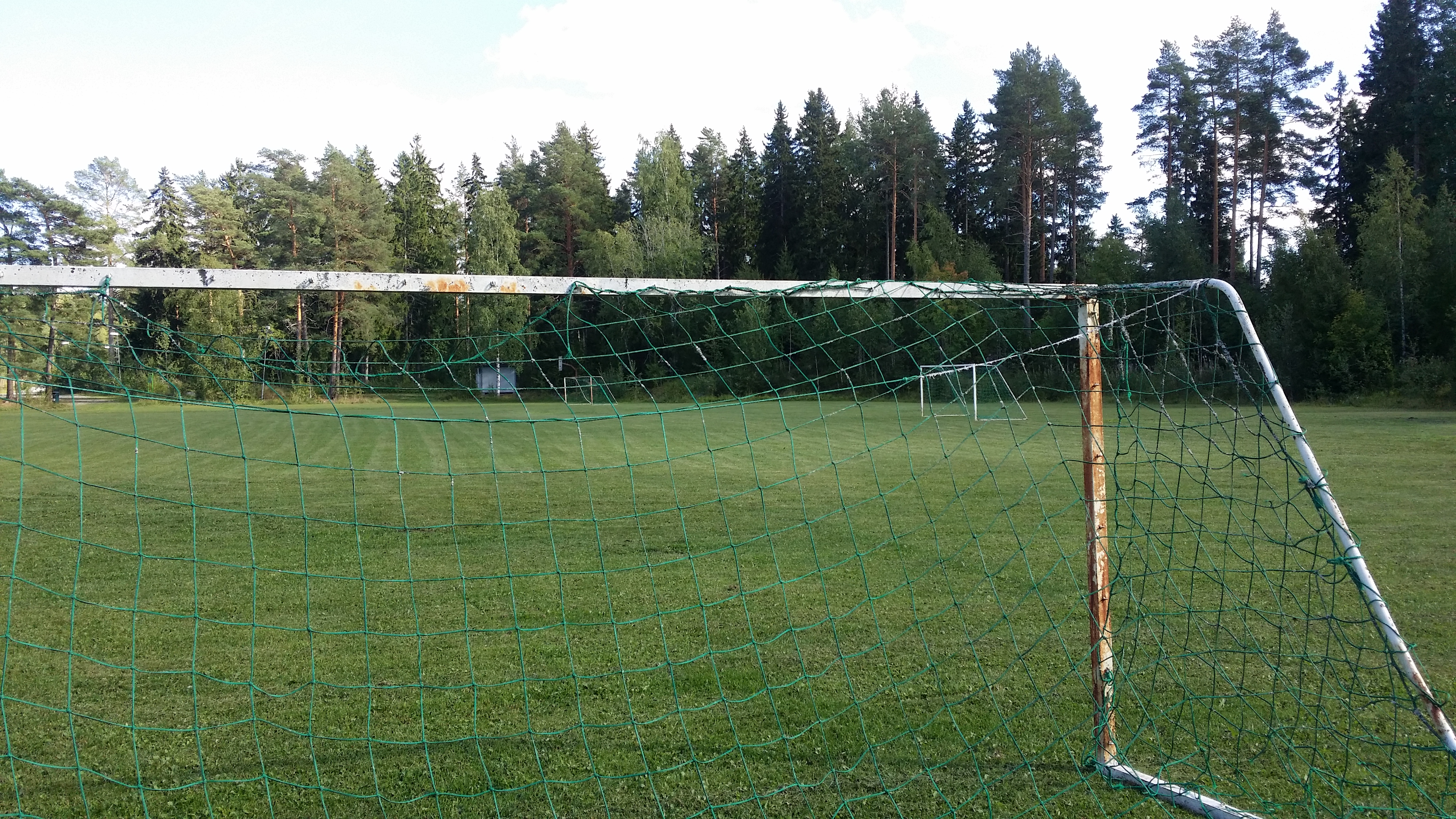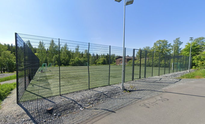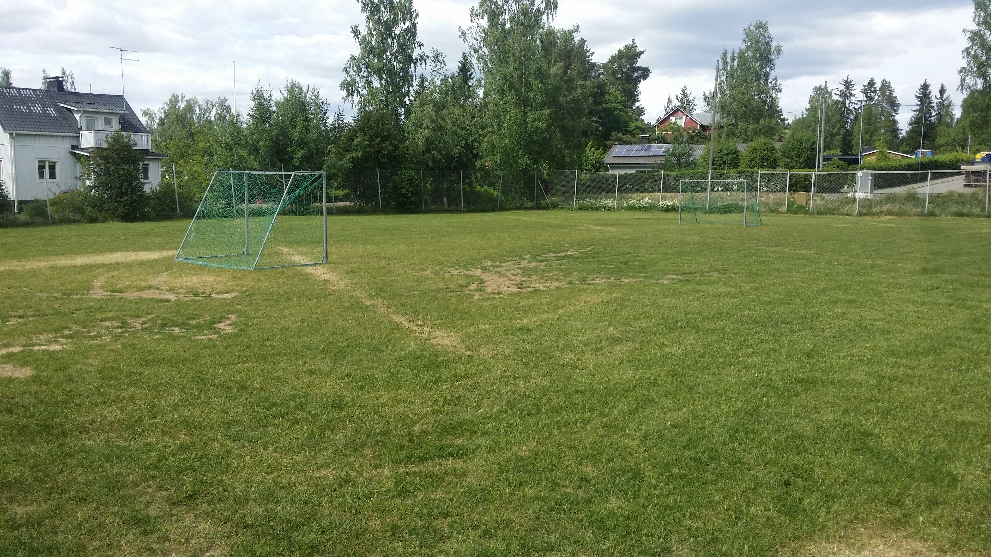 Tekonurmikenttä, jossa on jalkapallomaalit. Kentän reunalla on pienet siirreltävät katsomot sekä juoksusuora. Kentän vieressä on koulun parkkipaikka.